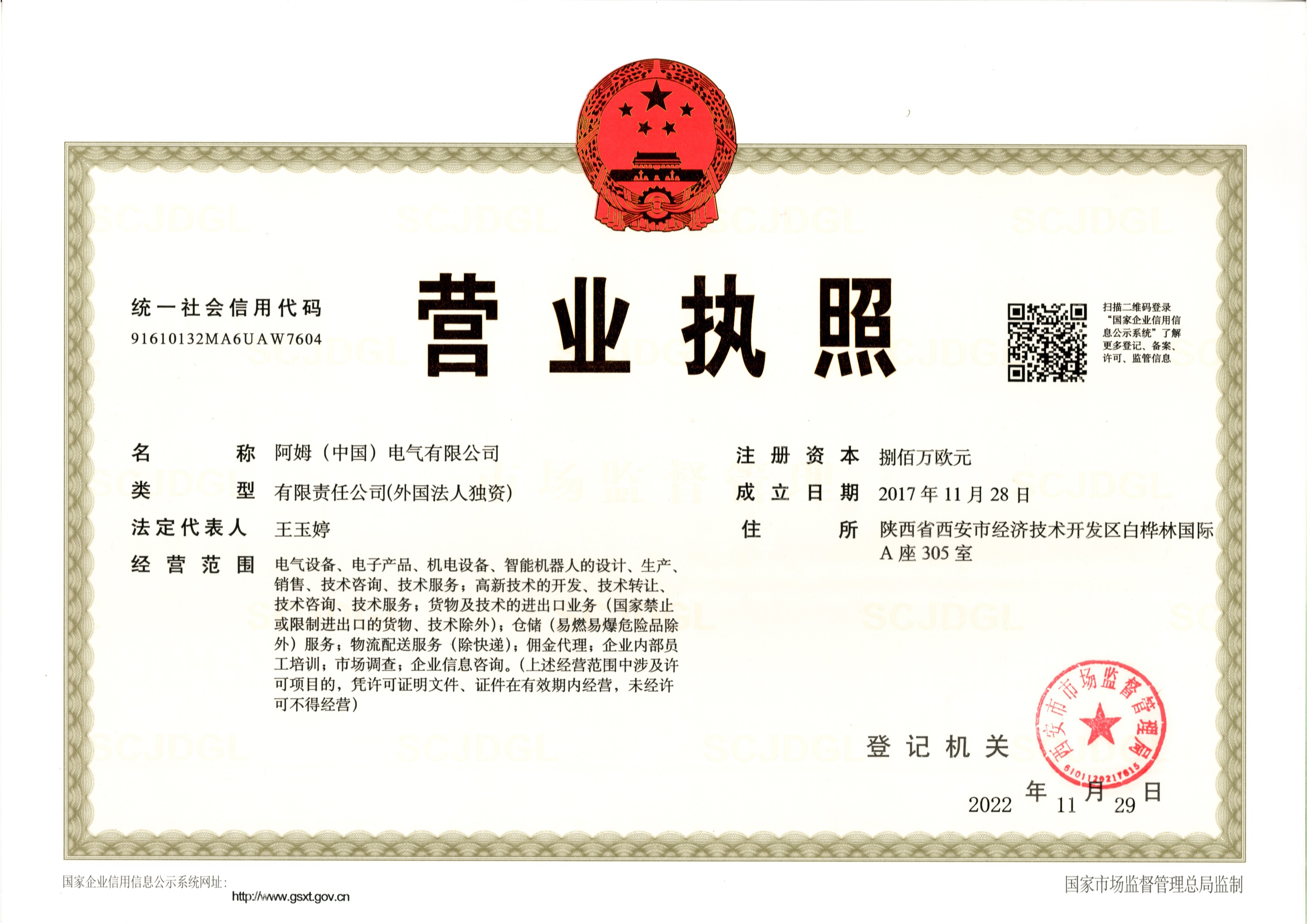 阿姆(中国)电气有限公司是德国阿姆在中国设立的全资子公司,位于陕西自由贸易区西安经济技术开发区。公司坚持“在中国,为中国”的发展战略,重视人才培养并积极为员工创造良好的发展空间。推动技术研发的本土化,通过持续投入和优化研发布局,不断提高本土研发与创新能力。